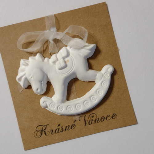 Sádrový odlitek andílek, stromek, koník s textem KRÁSNÉ VÁNOCE