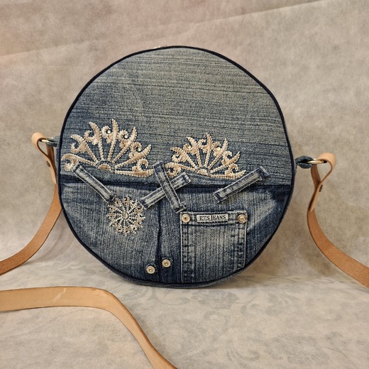 Tato kabelka je ušitá z použité rifloviny. S tímto originálním kouskem všude zaujmete. Materiál je vždy důkladně vypraný, vyžehlený a rozpáraný do posledního centimetru. Tak vznikl i tento kousek. Vnější strana je sešitá z rozpáraných pruhů a tím vznikl ten zajímavý efekt, na zadní je našitá kapsa. Celá kabelka se zavírá na dvoucestný zip.