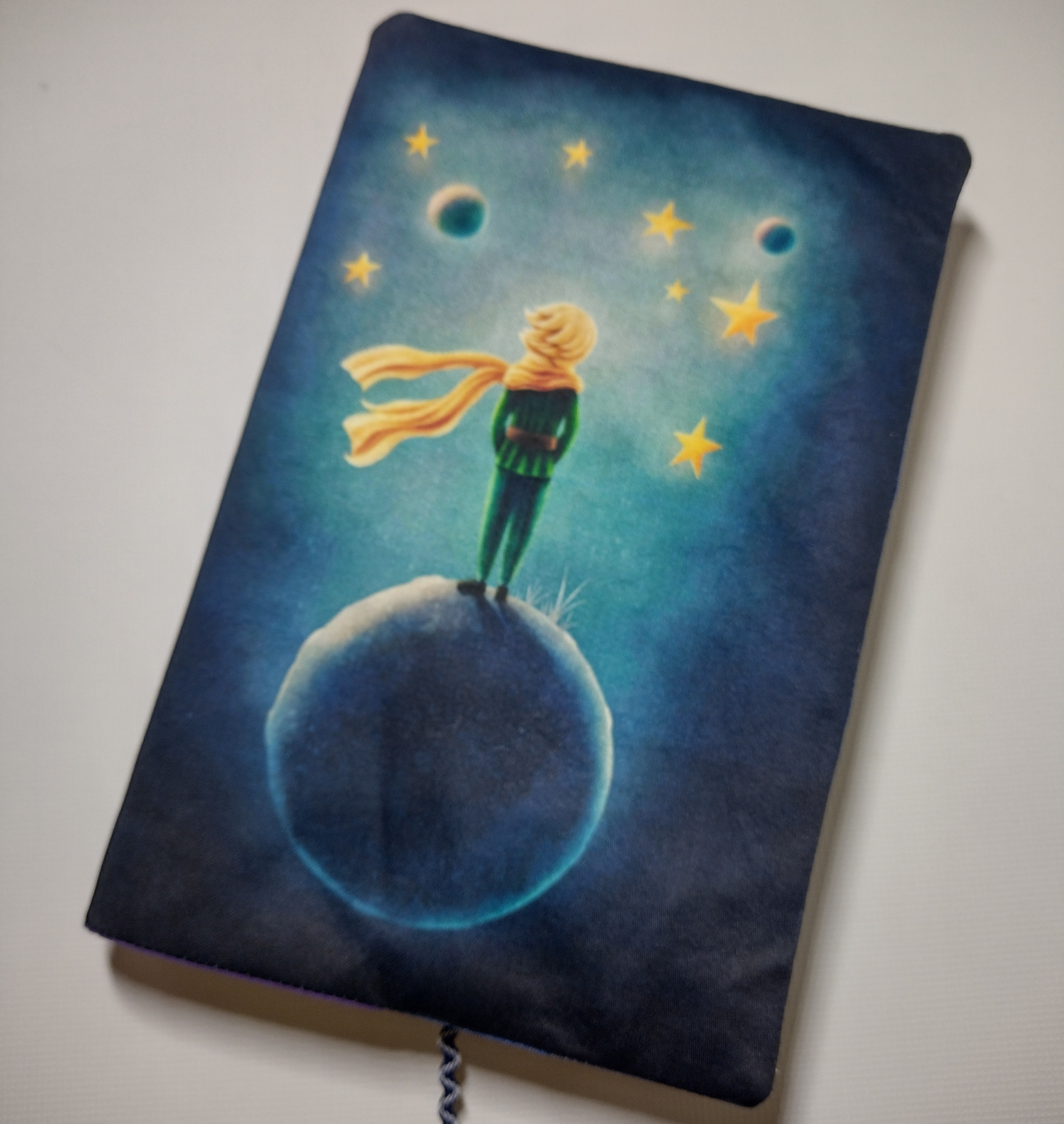 Obal který roste s knihou. Ušitý z pevných látek a bavlněné podšívky. Všitá záložka. Do tohoto obalu se vejde opravdu "tučné" čtivo.