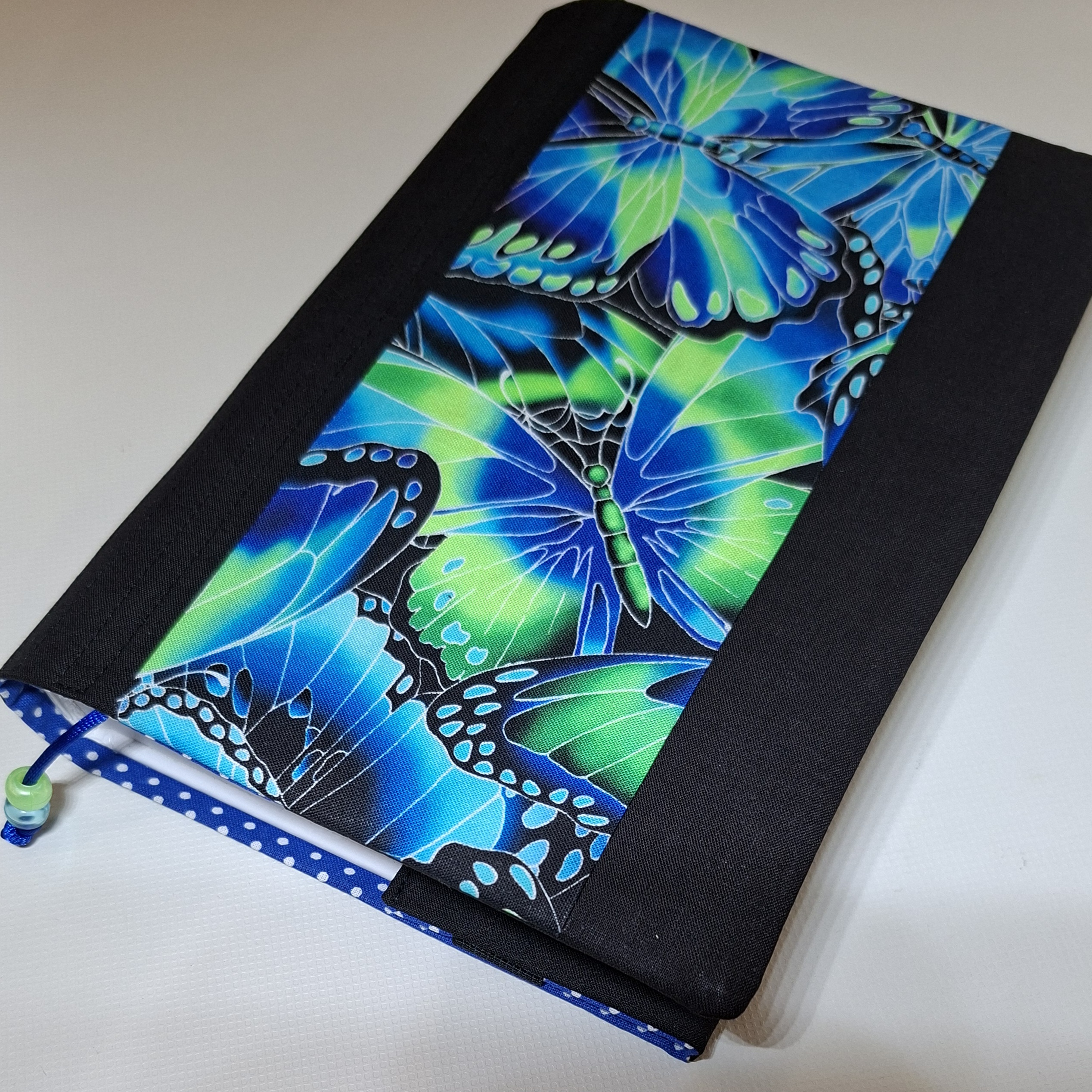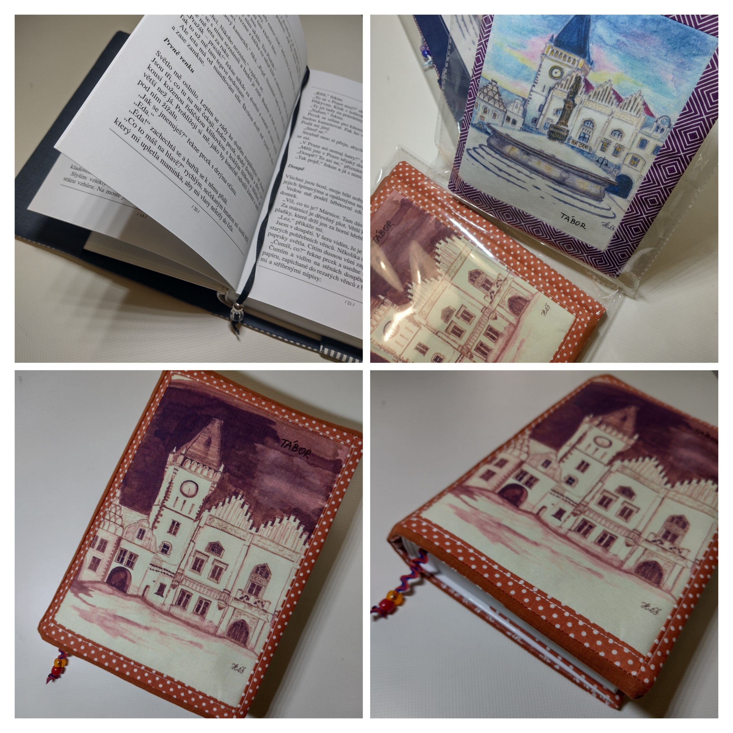 Obal který roste s knihou. Ušitý z pevných látek a bavlněné podšívky. Do tohoto obalu se vejde opravdu "tučné" čtivo. Na přední straně obalu je digitální tisk originální autorské kresby Tábora.