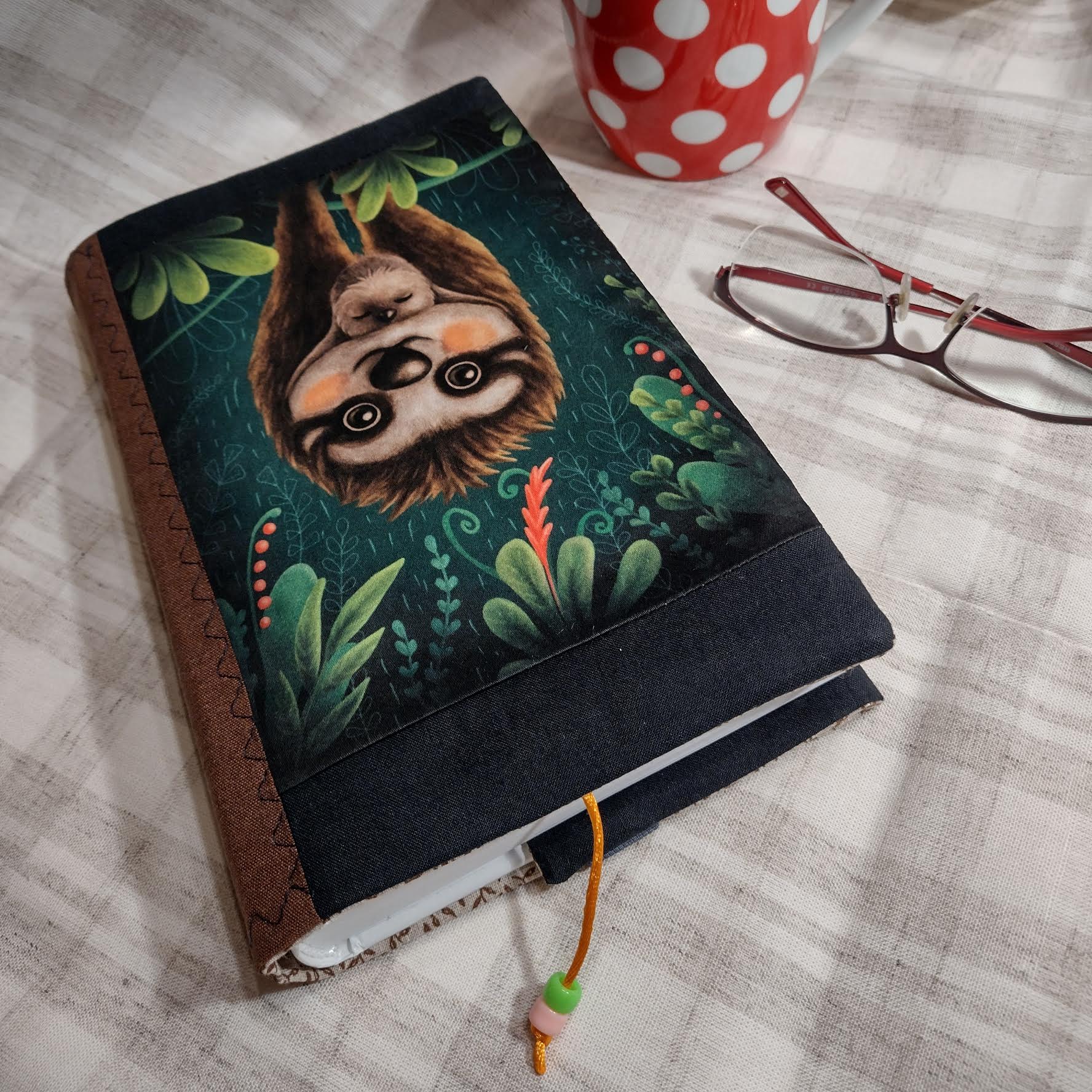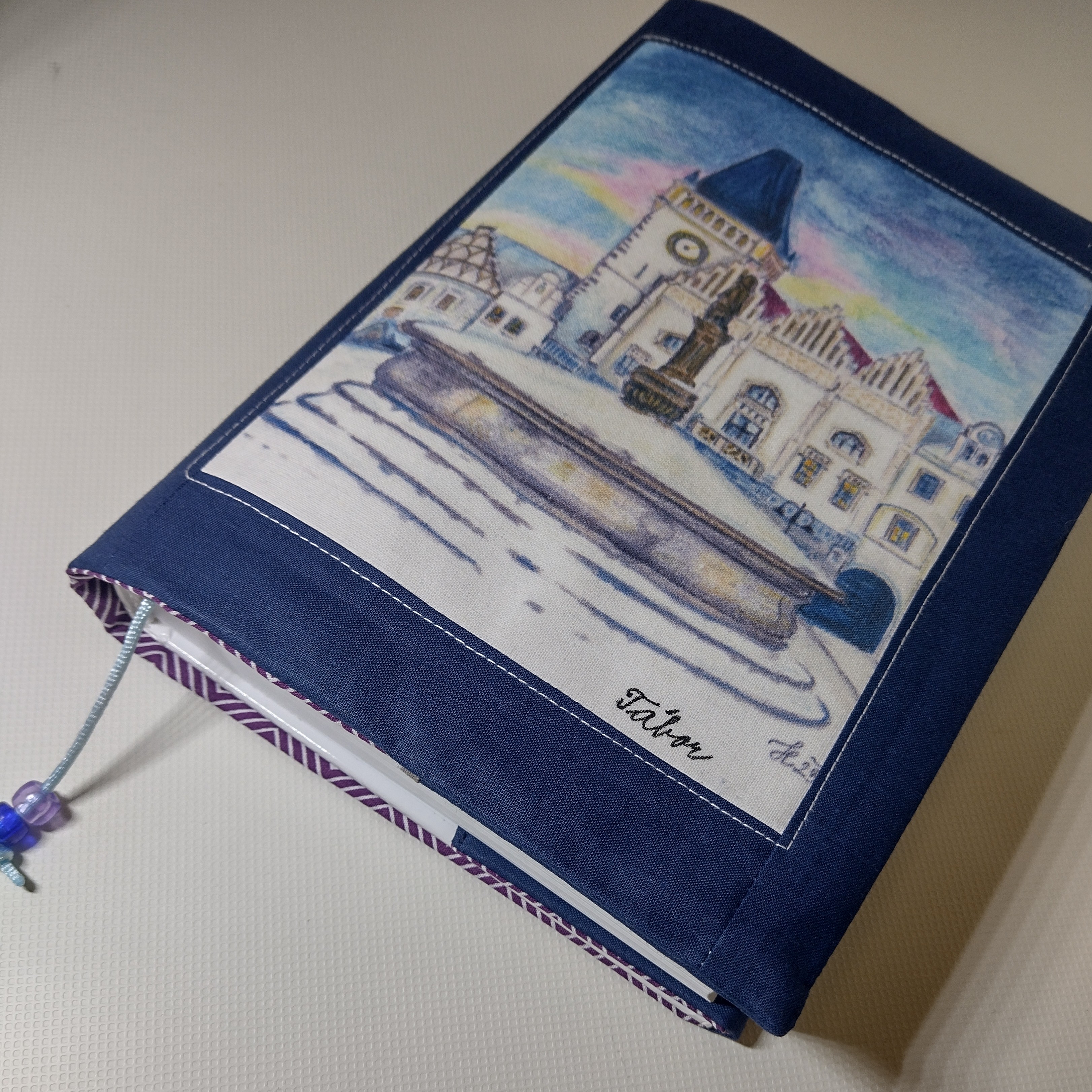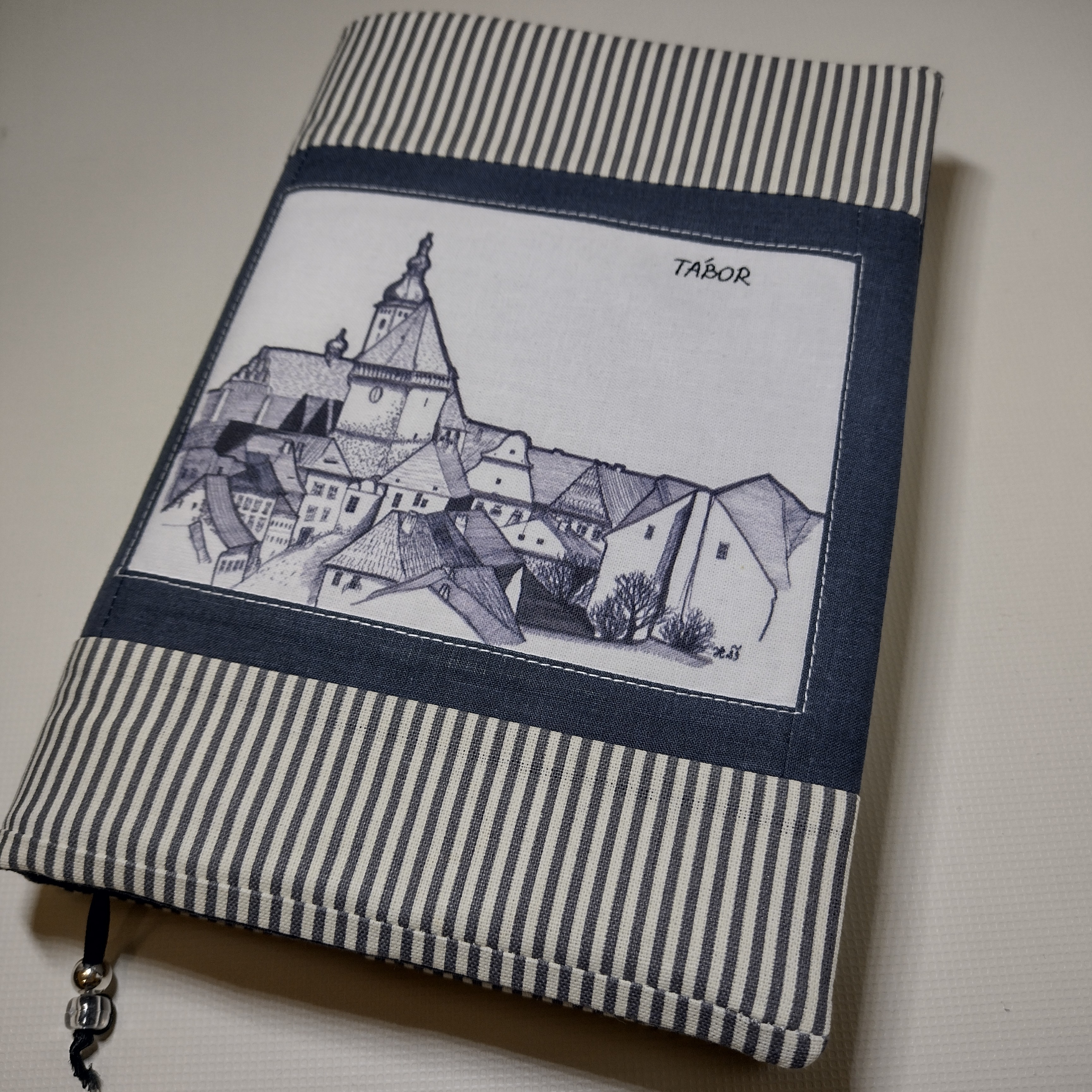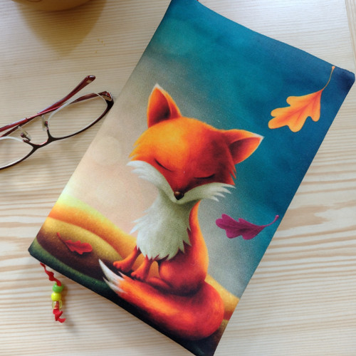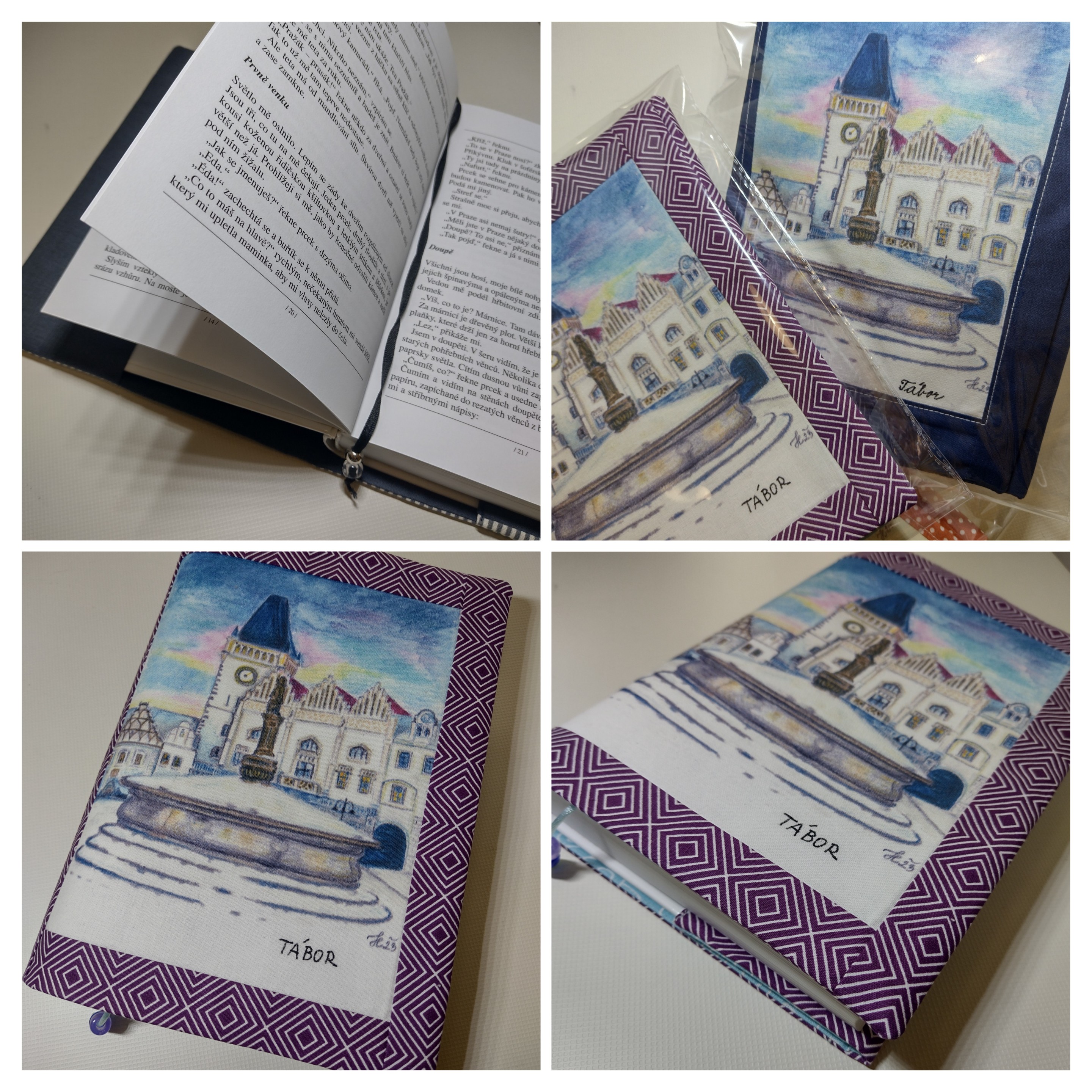 Obal který roste s knihou. Ušitý z pevných látek a bavlněné podšívky. Do tohoto obalu se vejde opravdu "tučné" čtivo. Na přední straně obalu je digitální tisk originální autorské kresby Tábora.