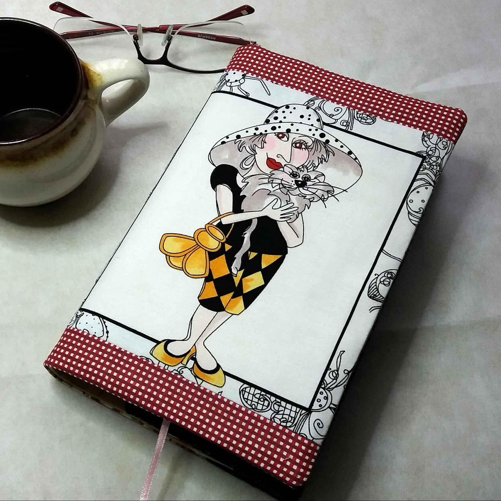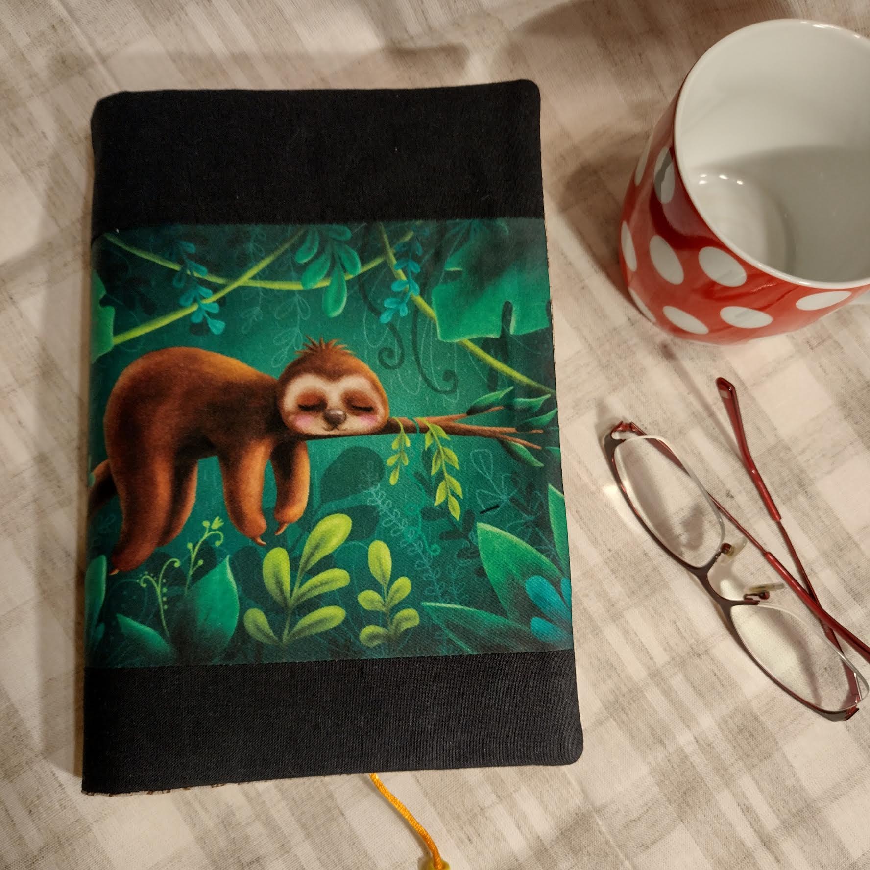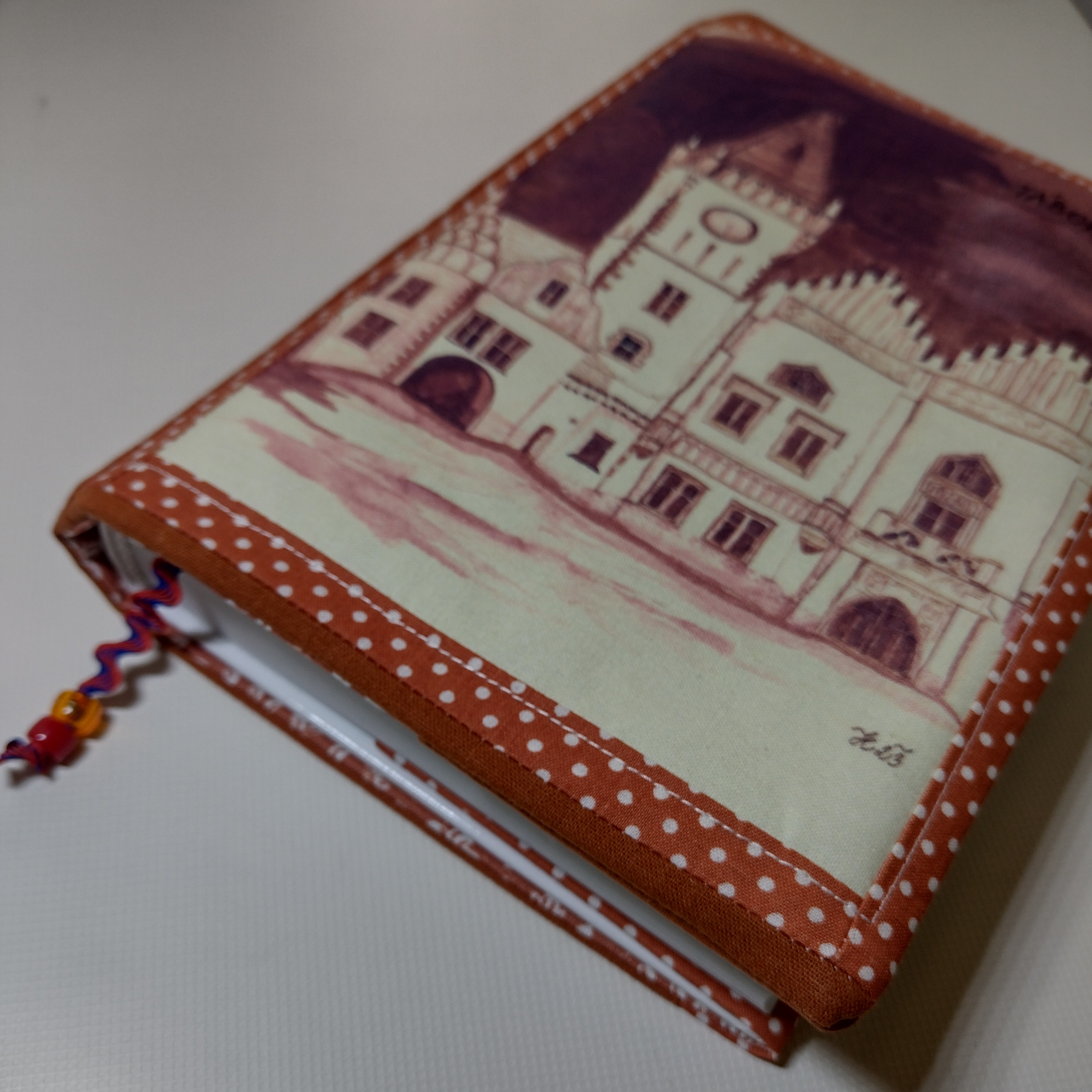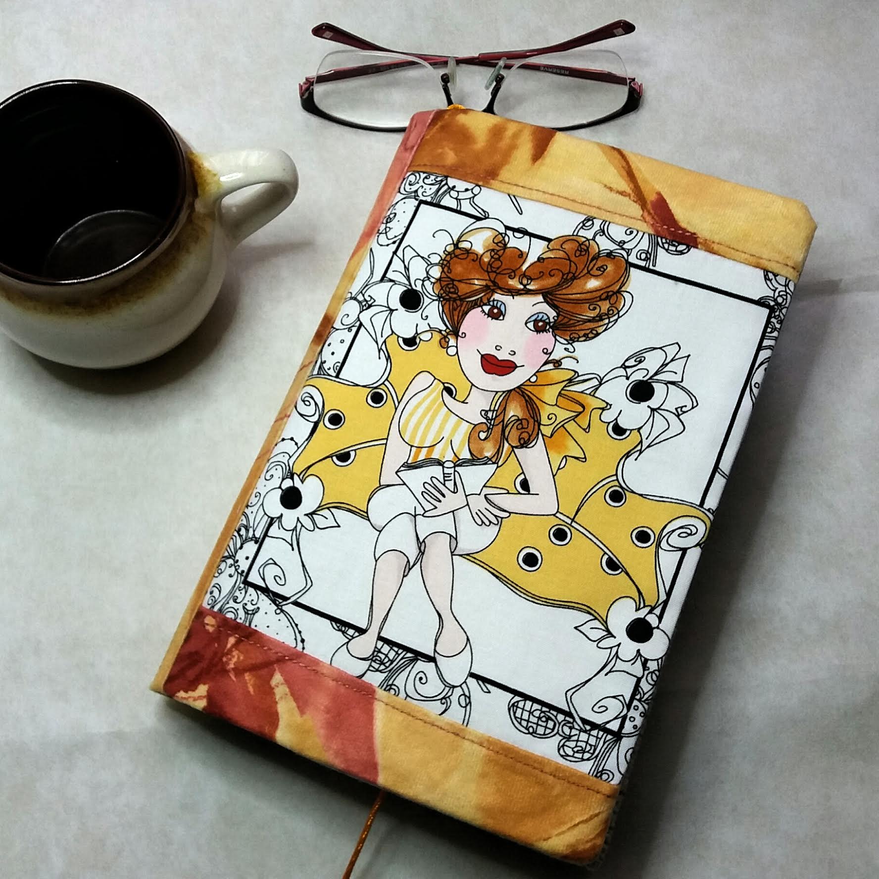 Obal který roste s knihou. Ušitý z pevných látek a bavlněné podšívky. Do tohoto obalu se vejde opravdu "tučné" čtivo. Na přední straně obalu je digitální tisk originální autorské kresby Tábora.