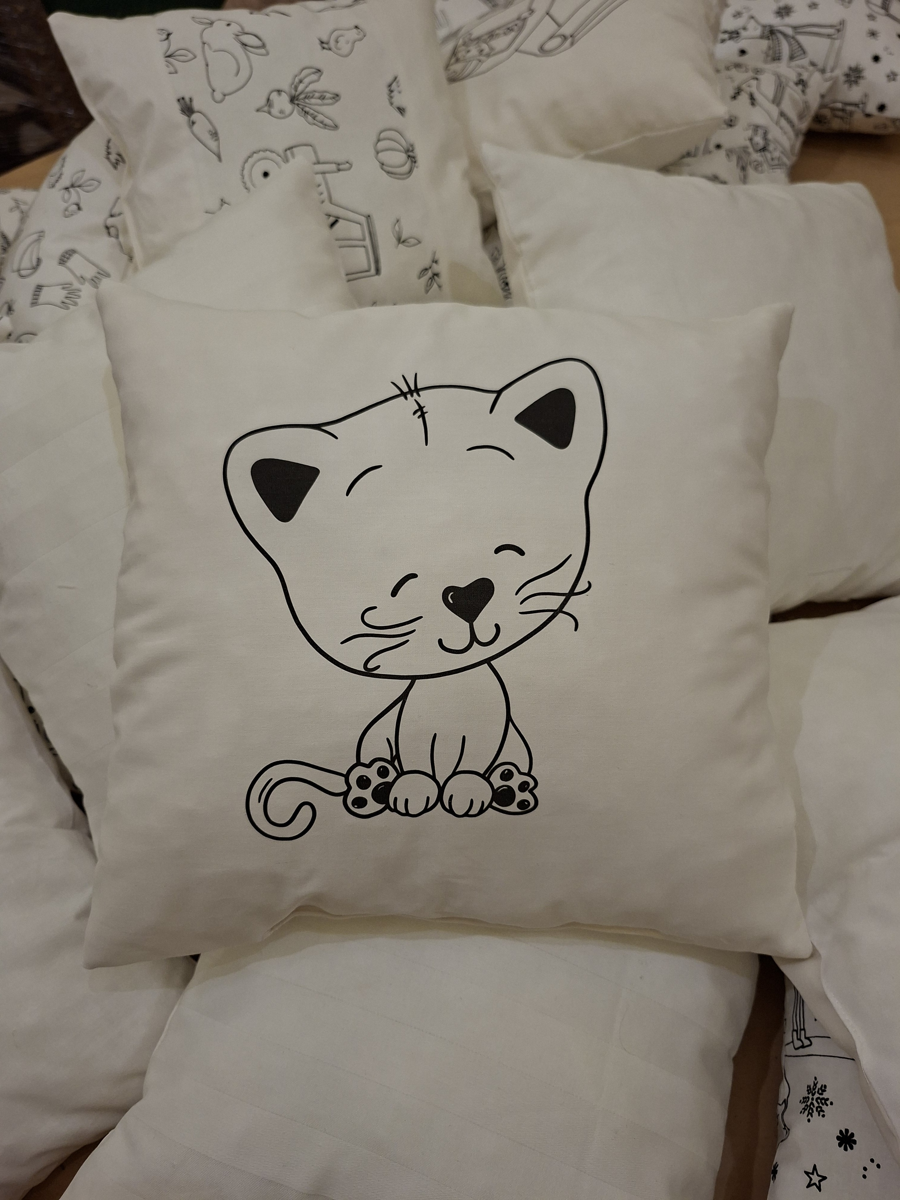 Bavlněný polštářek vyplněný stříhaným rounem. Zábava pro děti i rodiče. Stačí fixy na textil a pokojíček bude mít dekoraci podle představy vašich dětí. V nabídce i další varianty viz. doplňkové foto