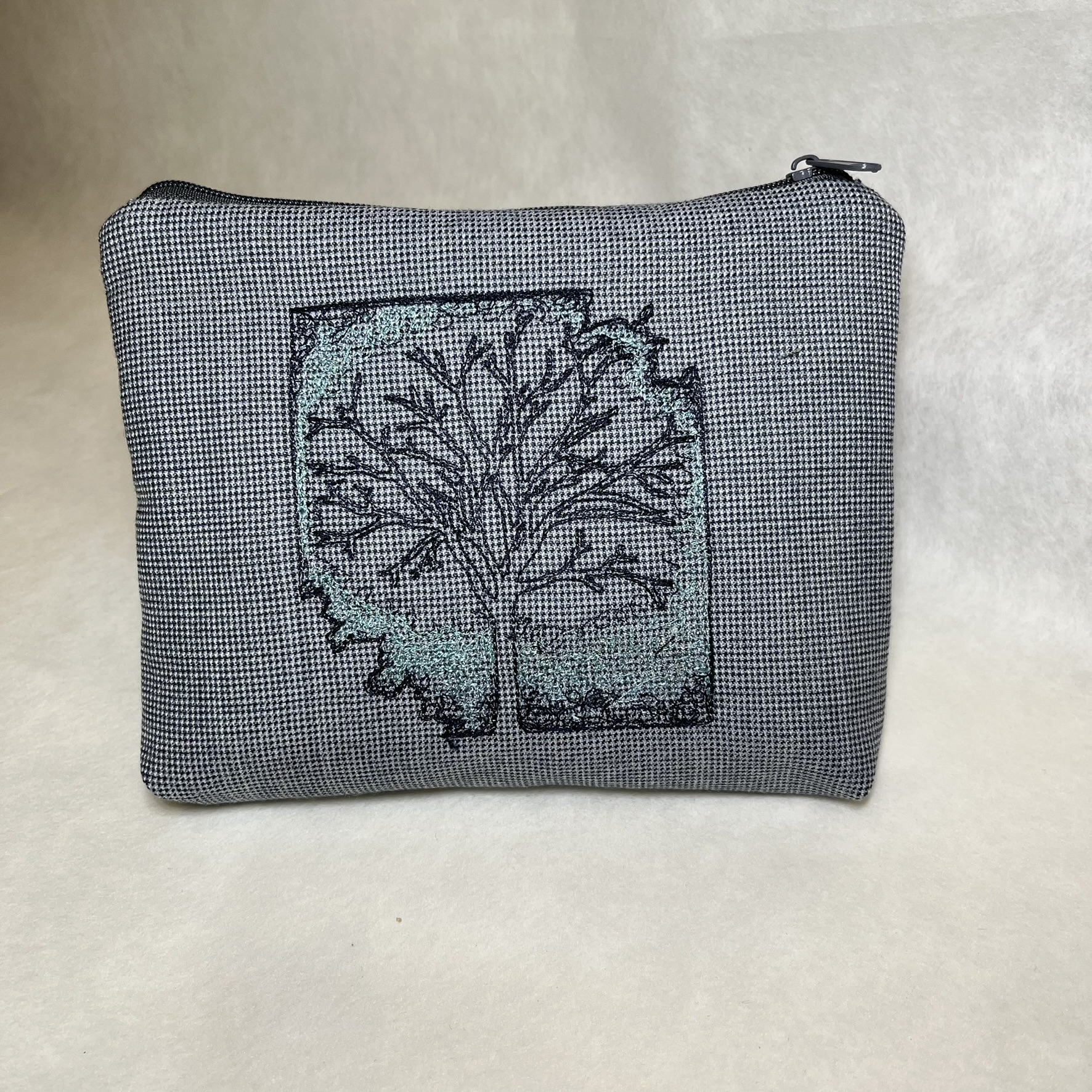 Taštička je ušitá z čalounických látek, zdobená strojní výšivkou. Užijete ji jako malý organizér do kabelky na tajné poklady. Rozměr: šíře 17 cm, výška 14 cm.