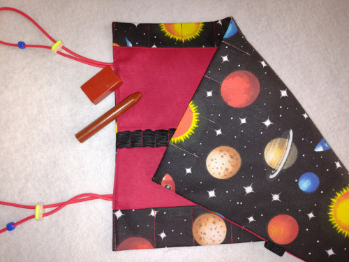 Tento typ pastelkovníku je ušit podle přesného zadání školy a šiji je na zakázku. Můžete si vybrat kombinaci látek, nejlépe prolistováním vystaveného i prodaného zboží. Většinu látek mám skladem. Je možné domluvit i obsah na jiný počet přihrádek. Je možné do soupravy ušít obal na flétnu nebo na ozvučná dřívka, vak na přezůvky, kapsář na lavici...