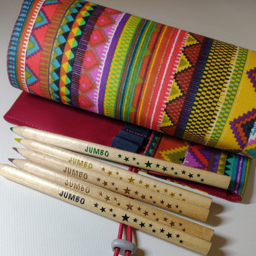 Tento rolovací pastelkovník je ušitý podle zadání Waldofské školy. Je určen na pastelky. Vejde se do něj 16 až 30 SILNÝCH pastelek. Je vyztužený, pevný. Je možné jej po domluvě ušít i v jiných barevných variantách anebo na jiný počet přihrádek.