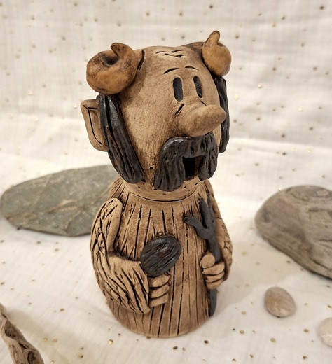 Keramický zvonek ČERT. Pálená, ručně modelovaná keramická figurka. Každý kus je originál. Výška zvonku je 17 cm